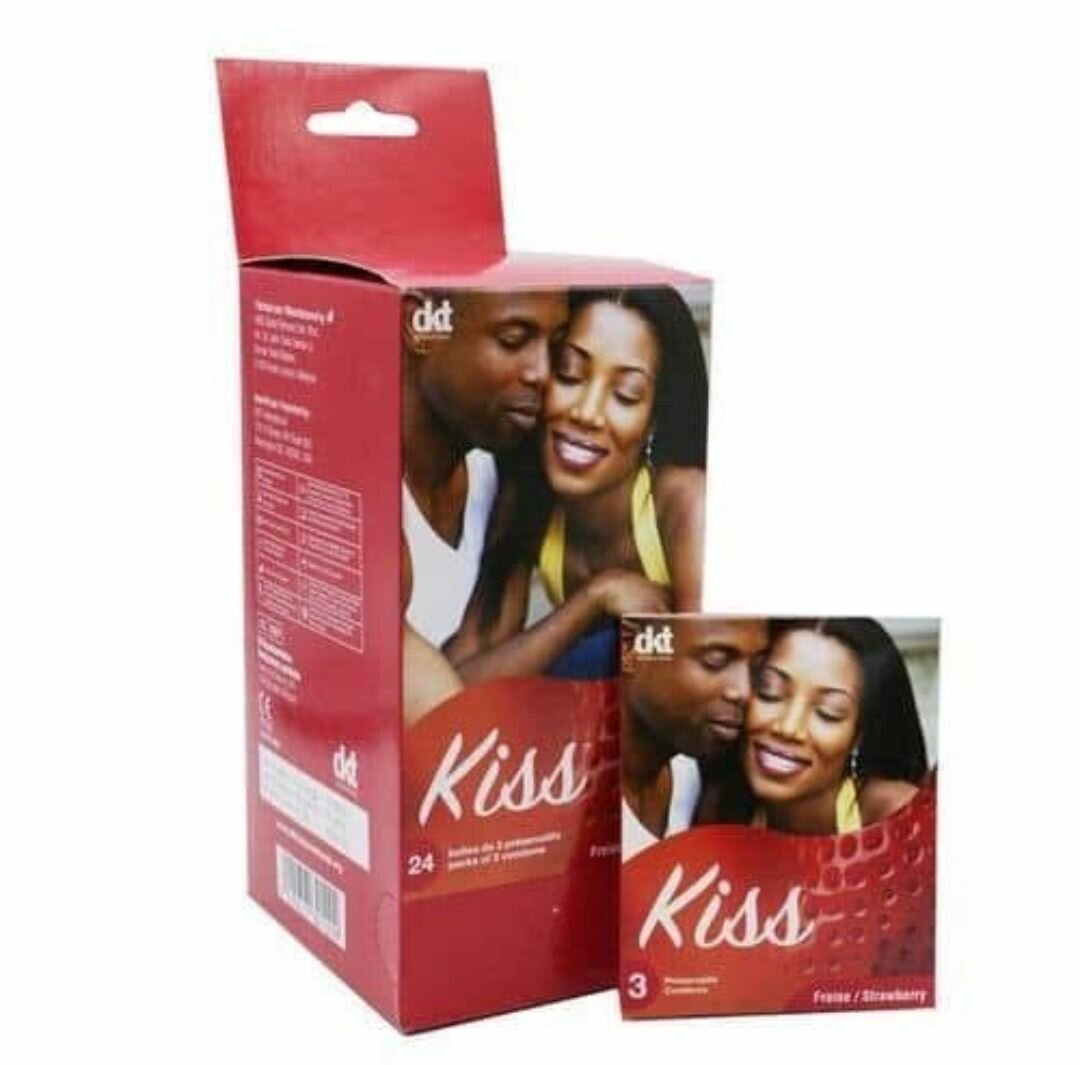 Lot de 24 préservatifs kiss Masculin Lubrifiés Légèrement perlé 72 préservatifs (24 paquets)
