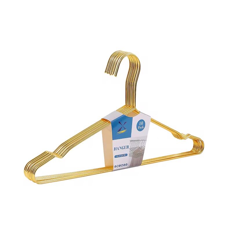 Optimisez votre garde-robe avec ce lot de 10 cintres en métal doré. Résistants et élégants, ils mesurent 40 cm de large pour 21 cm de haut, parfaits pour tous types de vêtements. Idéal pour une penderie stylée et organisée.