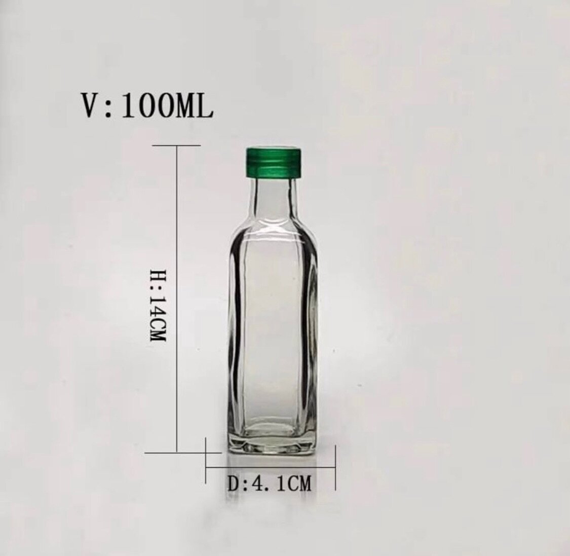 100ml Food Grade Square Glass Bottle with Plastic Cap