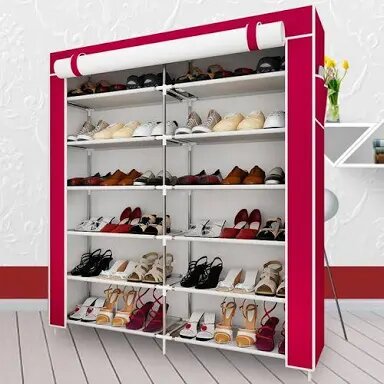 12 tier shoe wardrobe Takes 36 pairs of shoes. Easy to assemble and diamante. No tools needed A beautiful blend of fabric cover, plastic pipes, hollow metallic pipes..