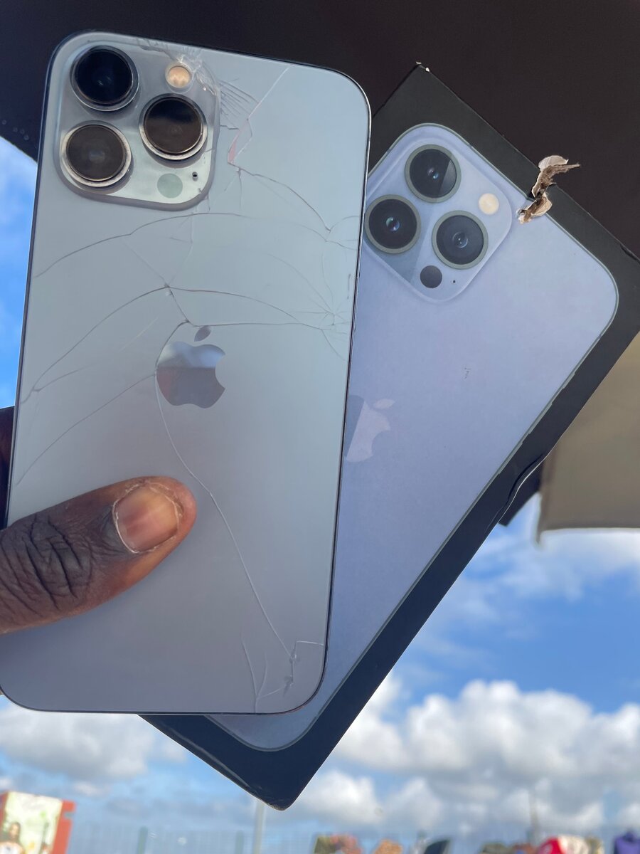 13 pro max 128giga tout passe écran dos fissuré et tache dans lécran 180.000