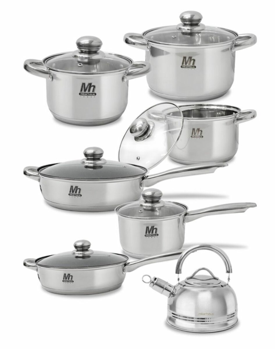 14 PCS 16/18/20 STAINLESS STEEL NON-STICK DIE-CASTING CASSEROLE SET WITH 3 CASSEROLES, 7 LIDS, & 16CM SAUCE PAN, 20CM FRYPAN & 3L KETTLE MH-4101