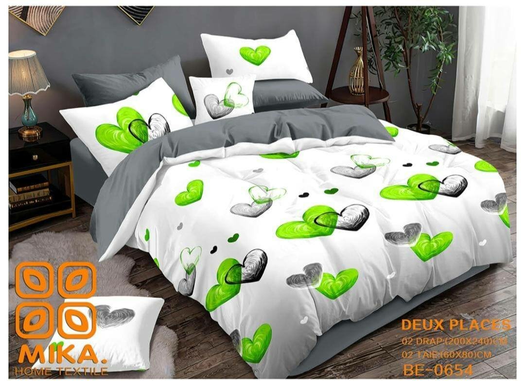 Transformez votre chambre avec cette élégante parure de lit double aux motifs cœurs verts, idéale pour une ambiance romantique et moderne. Fabriquée en tissu doux et durable, elle offre un confort exceptionnel pour vos nuits.