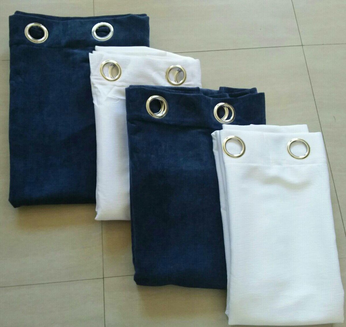 2 drops of curtains blue and white