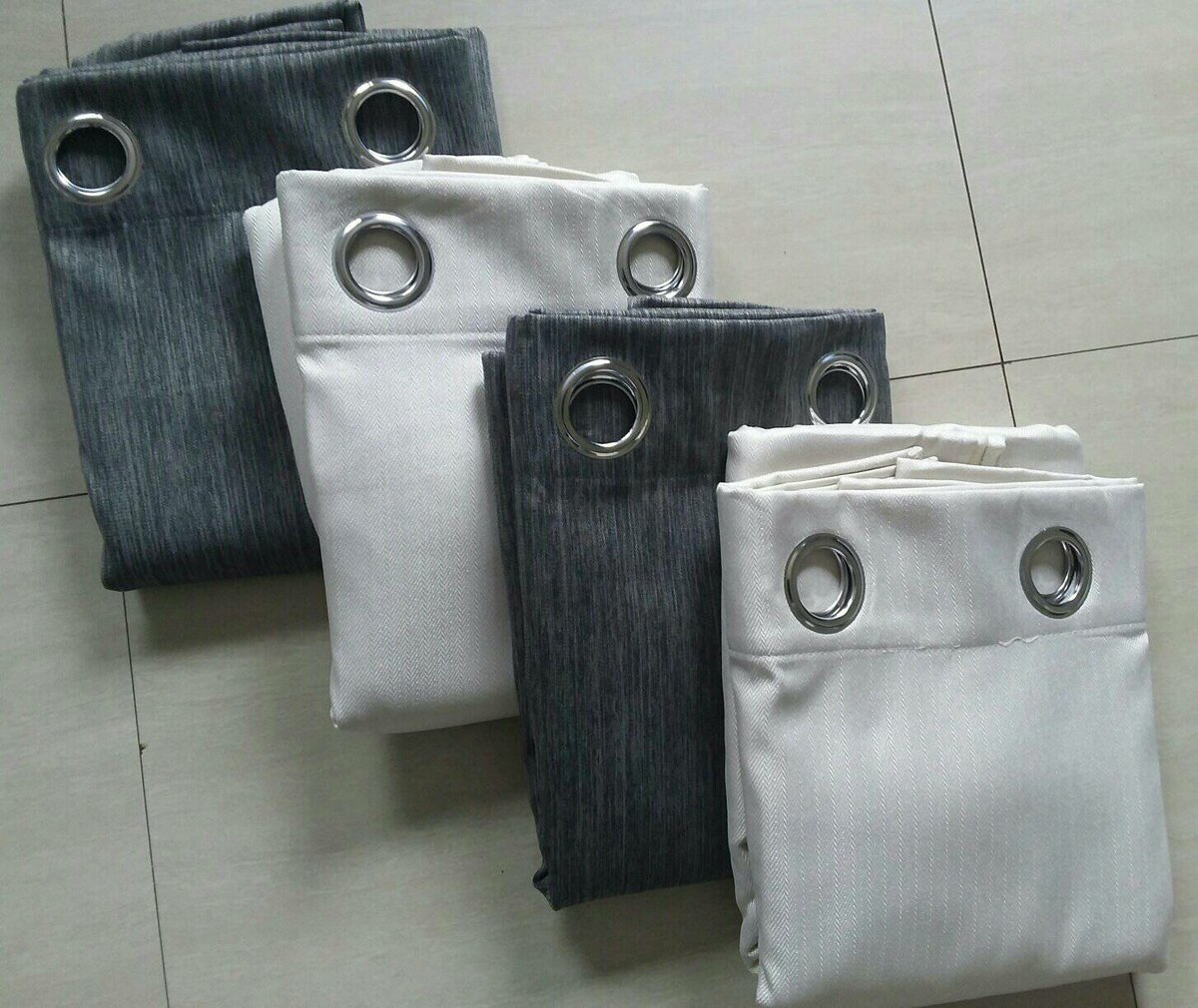 2 drops of curtains gray and white