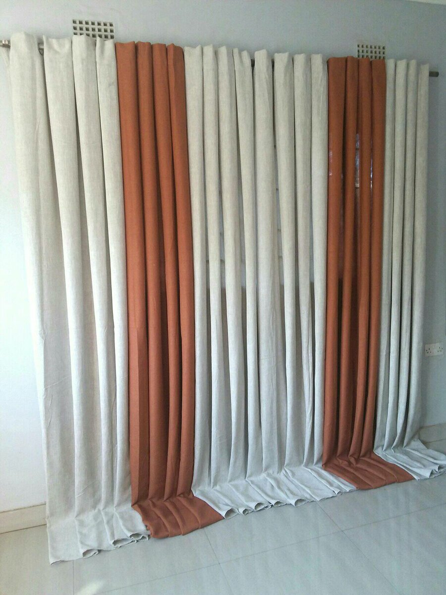 2 drops of curtains light brown and white