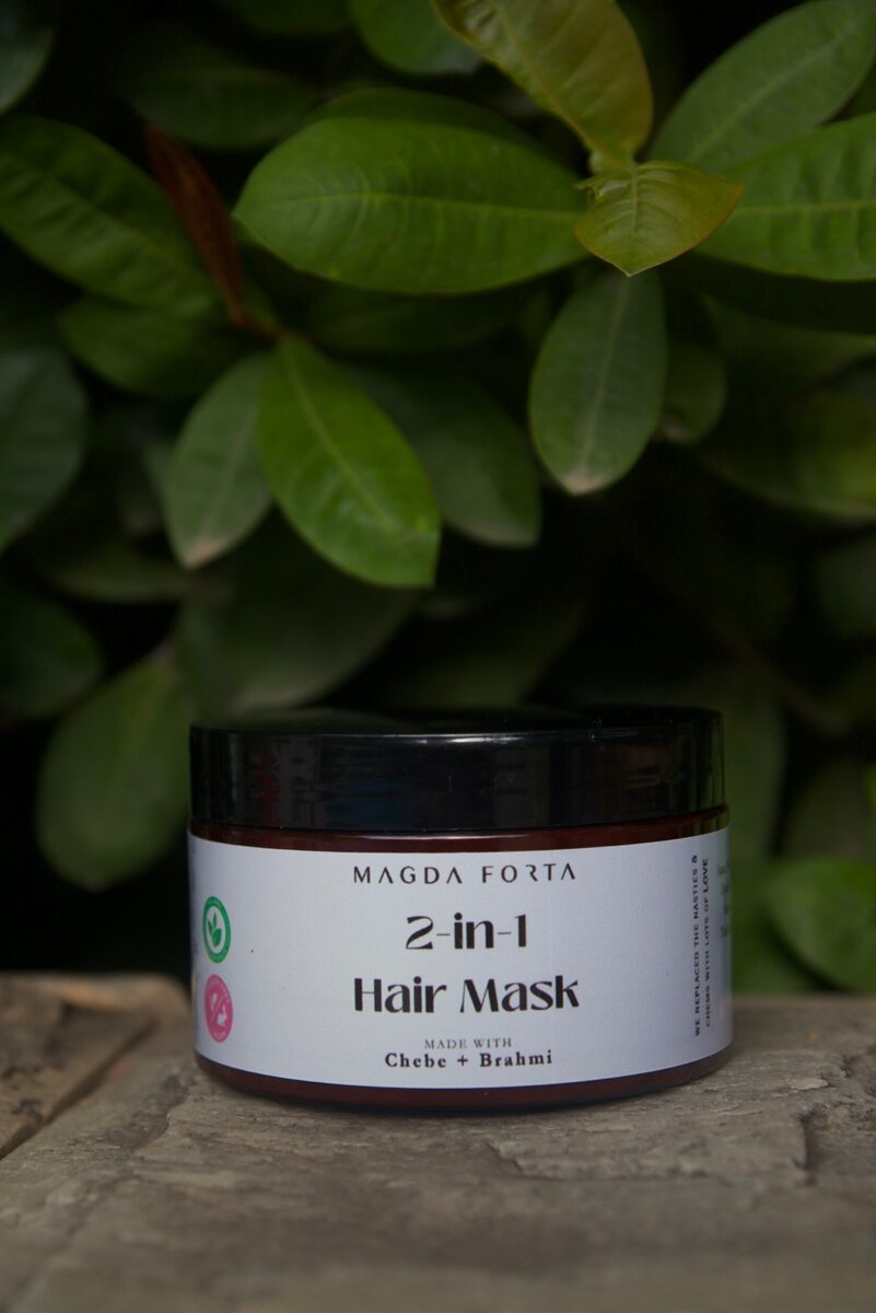 𝟮-𝗶𝗻-𝟭 𝗛𝗮𝗶𝗿 𝗠𝗮𝘀𝗸 is a moisturizing deep conditioner with 𝗖𝗵𝗲𝗯𝗲 & 𝗕𝗿𝗮𝗵𝗺𝗶 that detangles and hydrates the hair; helping you to retain length and maintain the health of your hair 300ml