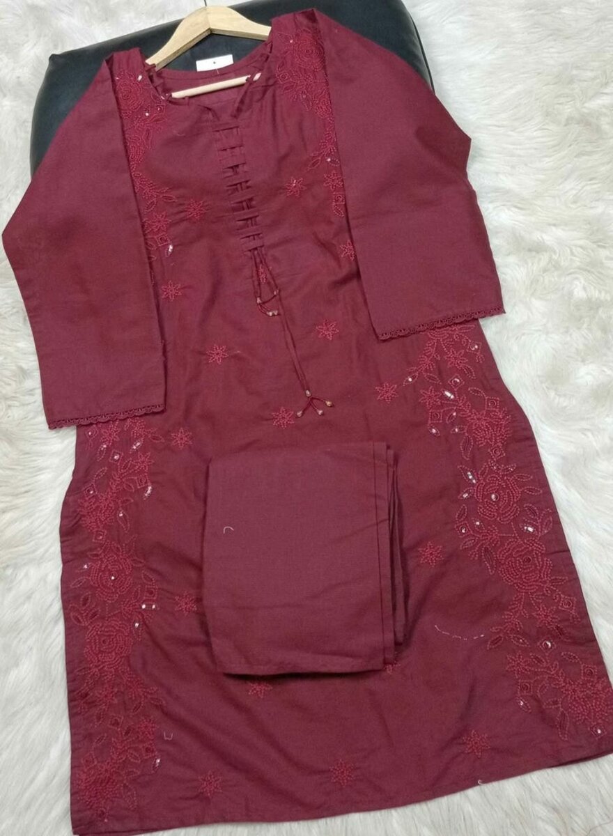 2 pcs women's unstitched Embroidered suit