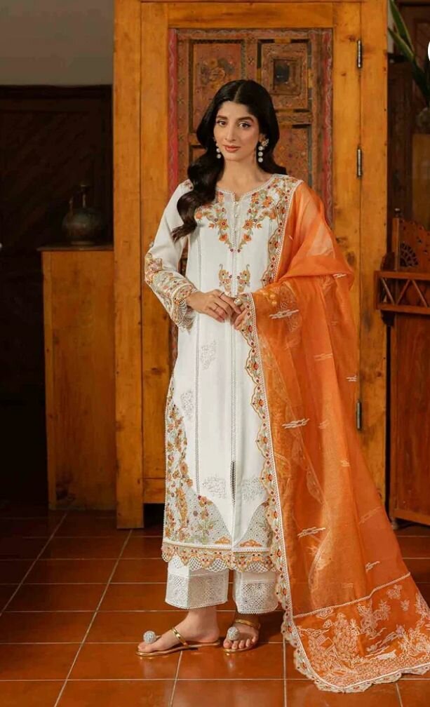 Embroidered Organza Women's Suit Set-3 Pcs in peach