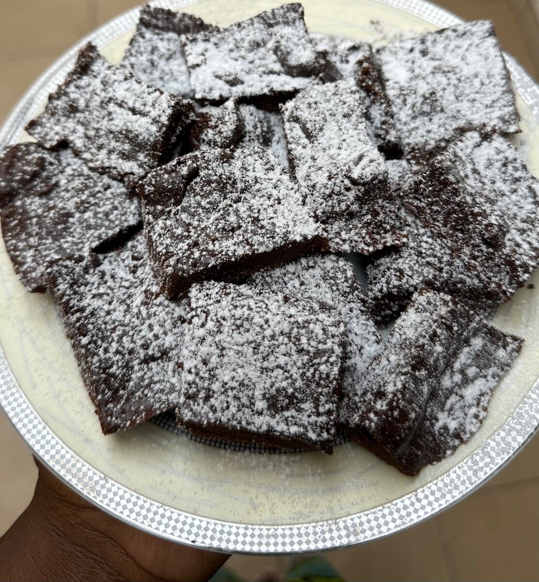 Savourez ces délicieux brownies au chocolat, moelleux et riches en goût. Saupoudrés de sucre glace, ils sont parfaits pour une pause sucrée ou comme dessert après un repas. 25 carreaux (un moule entier)