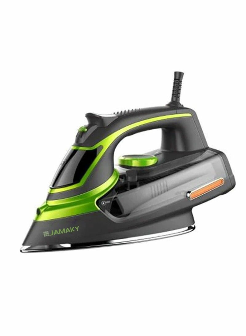 2800W 420ML STEAM SPRAY STEAM IRON WITH ADJUSTABLE TEMPERATURE JMK1004 (L11.6 X W5.0 X H6.1)INCH - BLACK/GREEN