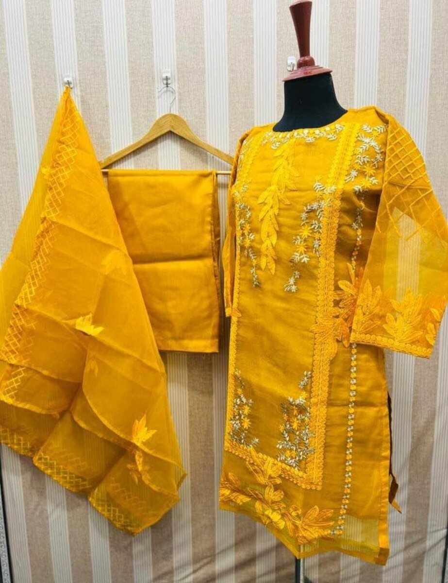 New Eid collection 3 pc .organza,silk, chiffon dc free