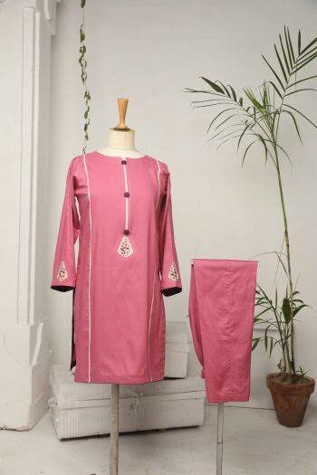 Ladies embroided 2pc suit in lilen fabric