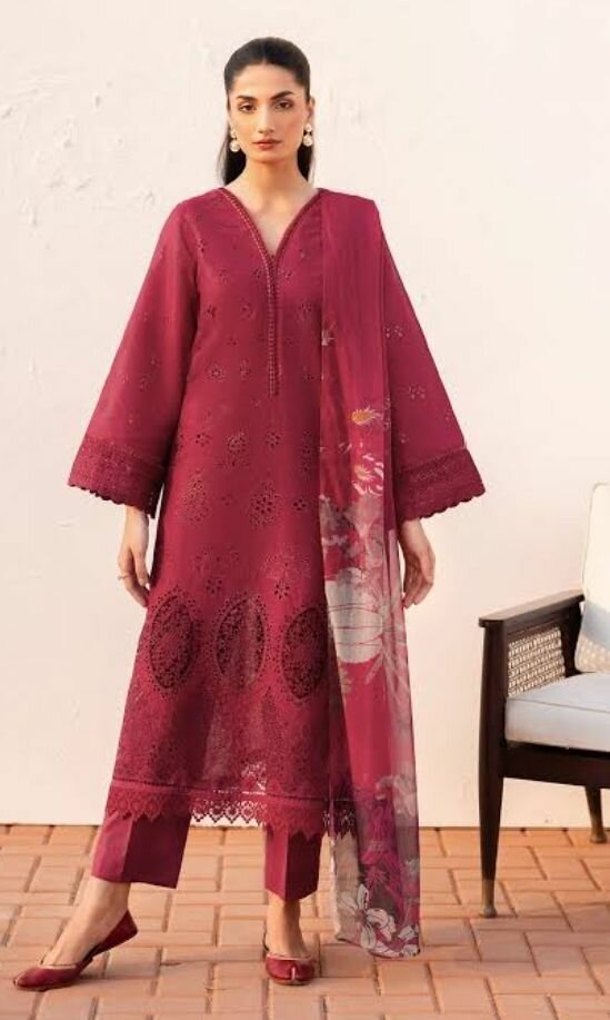 Airjet lawn full embroidery unsatich 2 pc ,dc free