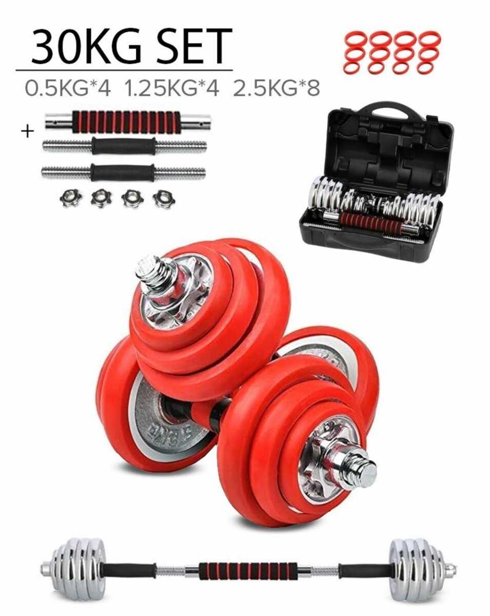 30KG 2-in-1 Adjustable Chrome Plated Dumbbells Set Used as Barbell, Weights Quick Conversion With Rubber Sleeve, Storage Box & Nonslip Connecting Bar, Home Fitness Gym Workout Exercise Training HJ-00082-30KG Model Number hj_00082_30kg