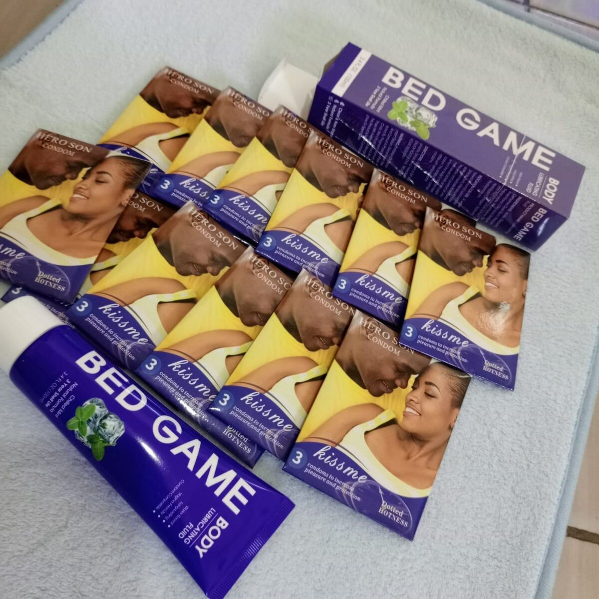 Découvrez le duo parfait pour des moments intimes : les préservatifs Bed Game assurant sécurité et confort, et le lubrifiant corporel pour une expérience encore plus douce.