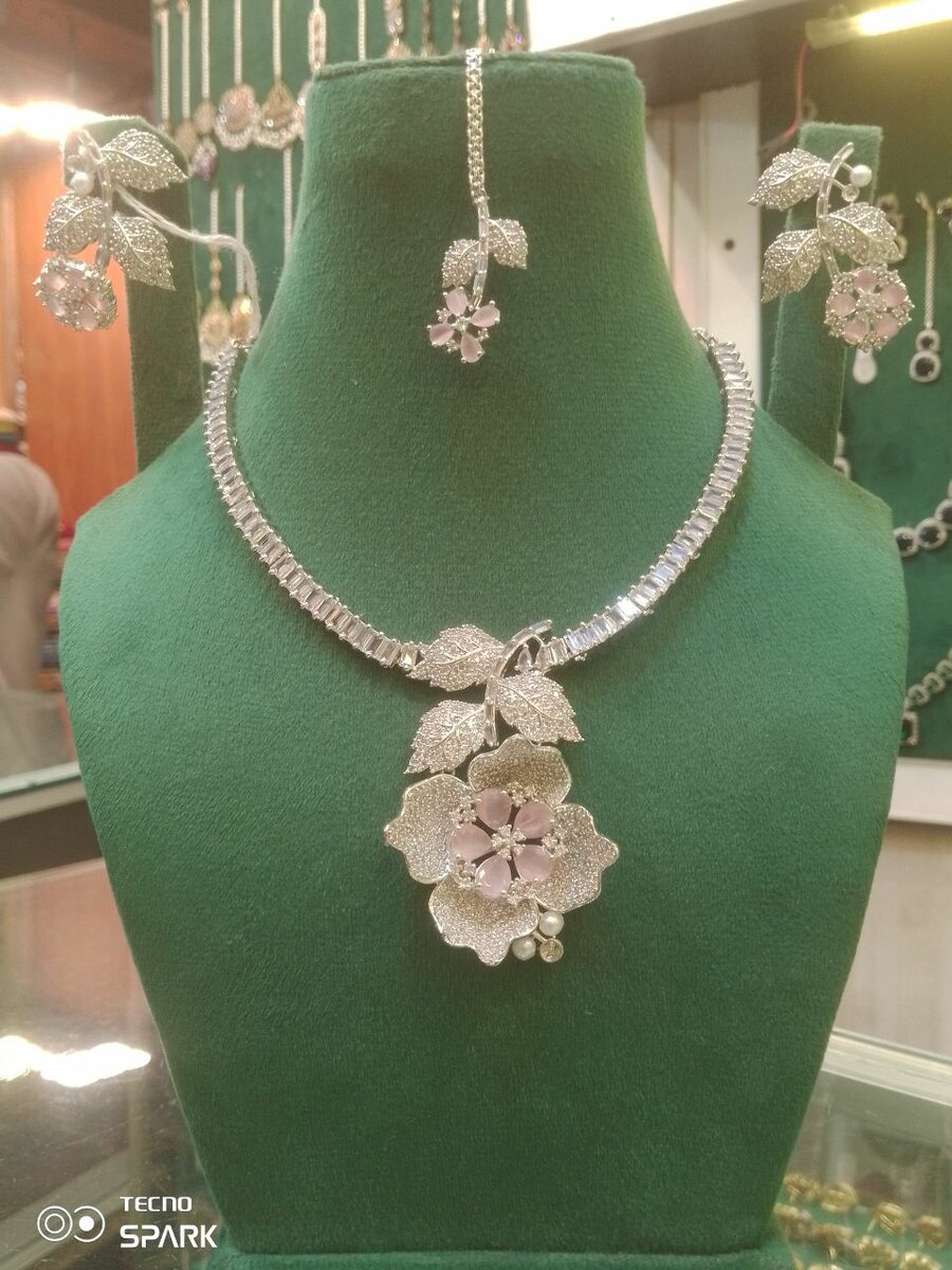 One carat rodiam plating 3D flower Cubic zarkons diamond luck set