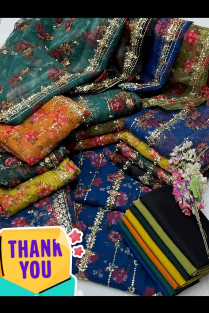 3pc Organza floral print peral and sequence work
