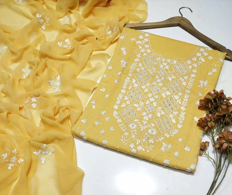 New Eid collection 3 pc .organza,silk, chiffon dc free