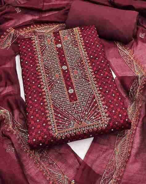 Women unstitched organza mirror work dress