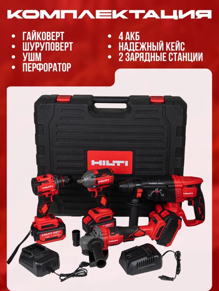 Набор стоит из 4 УШМ Гайковерт Шуруповерт бесщеточный Перфоратор 4аккумулятор