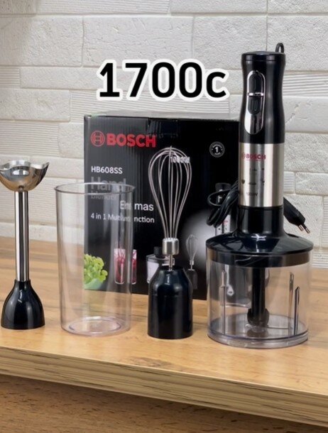 4 насадкасы бар: •Блендер •Чоппер 0,5 л •Венчик Мерный стакан Мощность 1000BT