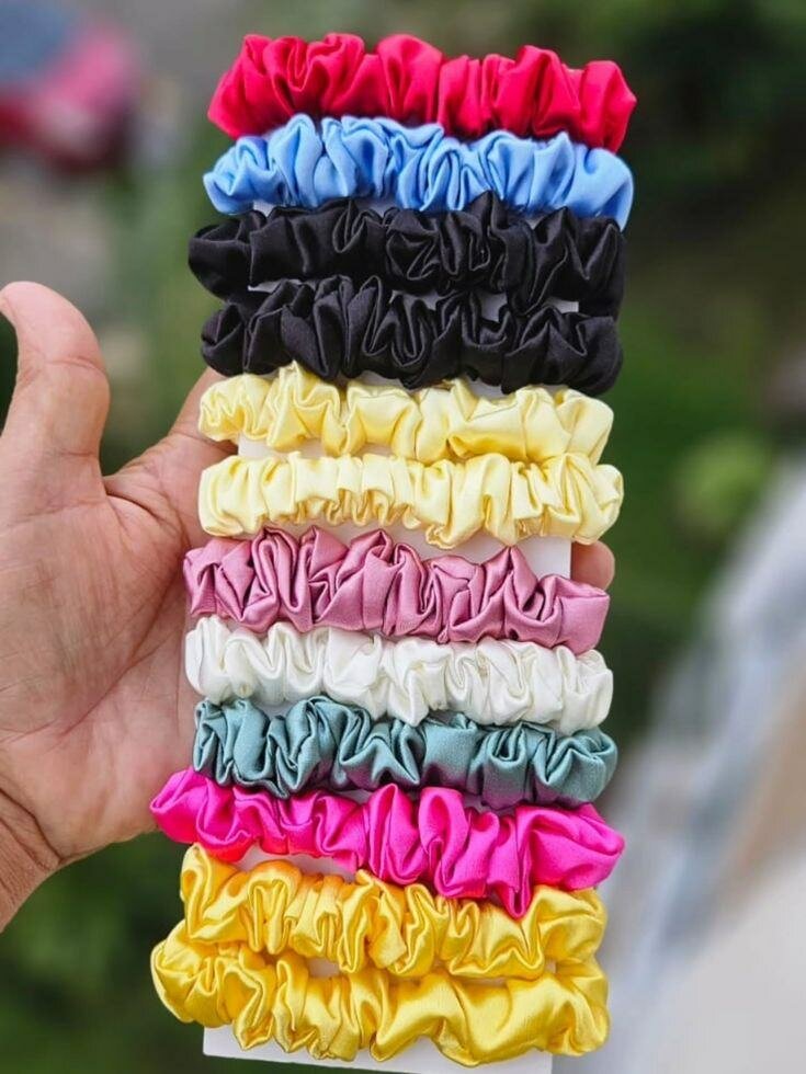 Ajoutez une touche d'élégance à votre coiffure avec ces chouchous en satin colorés - parfaits pour toutes les occasions. Lot de 50, idéal pour varier votre style chaque jour.