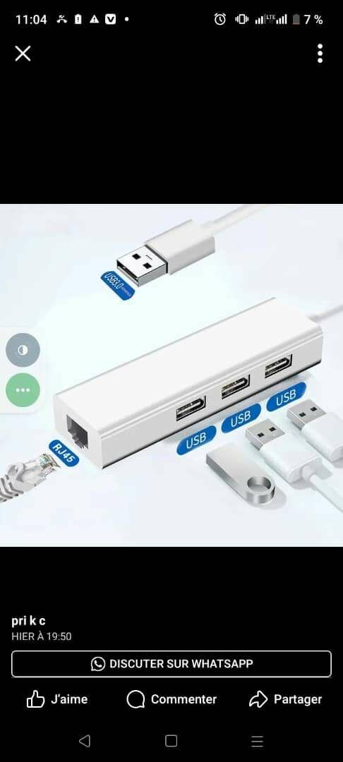 Adaptateur USB Ethernet 3 Ports