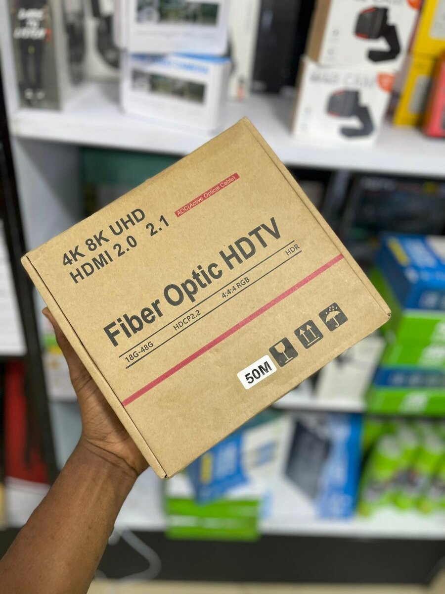 Experience ultra-high-definition video and audio with this 50-meter fiber optical HDMI cable. Supports HDMI 2.0/2.1 for 4K/8K UHD resolution, perfect for home theaters, gaming, and professional setups.