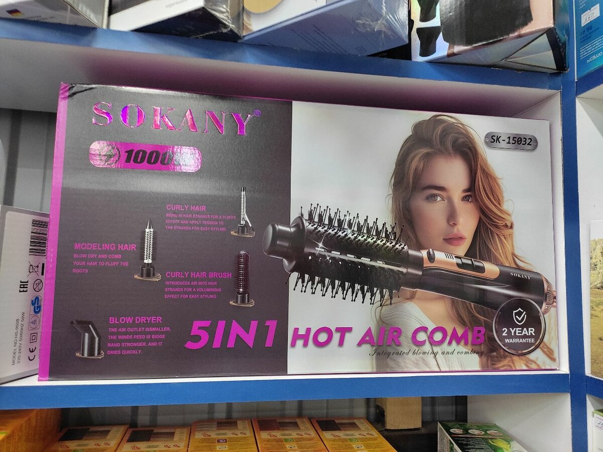 Фен-щетка от Sokany, в комплекте 3 насадки. 1000ват