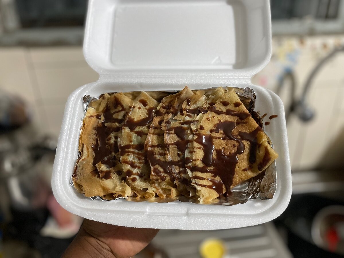 Délectez-vous avec ces crêpes à la sauce chocolat onctueuse, parfaites pour un dessert gourmand ou un goûter. Fraîchement préparées, elles sont idéales pour satisfaire vos envies sucrées.