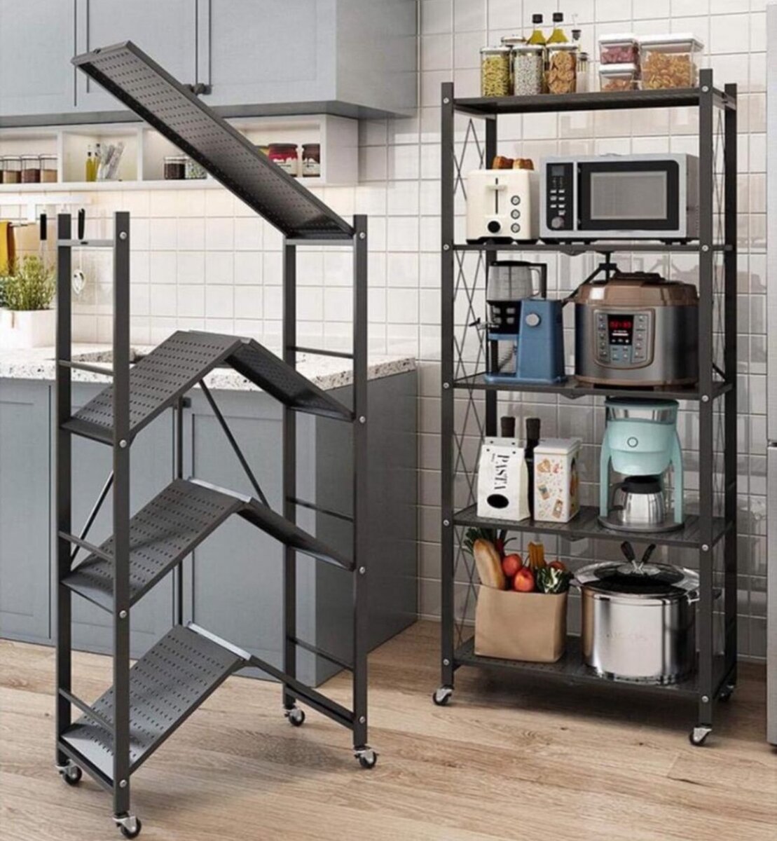 5 layer foldable metallic storage rack