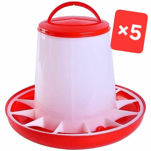 Mangeoire pour poules en plastique robuste. Idéale pour nourrir facilement vos volailles. Pack de 5 pour une capacité étendue. Simple à nettoyer et durable.