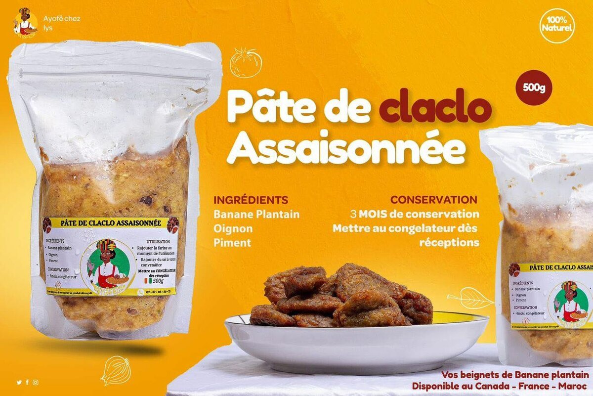Découvrez notre pâte de claclo assaisonnée, faite de banane plantain, oignon et piment. Préparée avec soin pour une conservation jusqu'à 3 mois au congélateur. Idéale pour créer des beignets savoureux rapidement. Disponible au Canada, France, et Maroc.