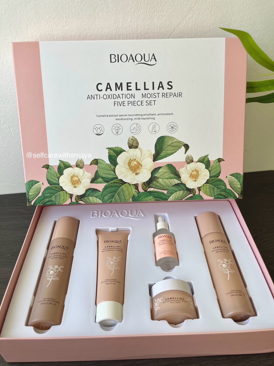 These products are infused with camellias which helps to minimize acne and to calm irritated skin, it reduces redness and inflammation, restores skin moisture and prevent water loss.