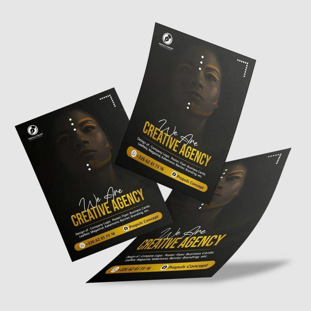Attirez l'attention sur votre marque avec ces flyers publicitaires élégants et modernes. Parfaits pour promouvoir votre agence créative ou tout autre événement. Impression couleur de haute qualité sur papier résistant.