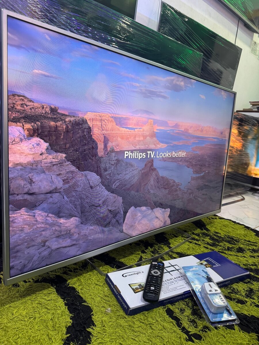 50inches full digital satellite android 4k ultra hd led smart Phillps machine.. full internet wireless hotspot, Bluetooth and screen casting connection.. has 4 hdmi and usb .. going on a cool price ..dm if interested