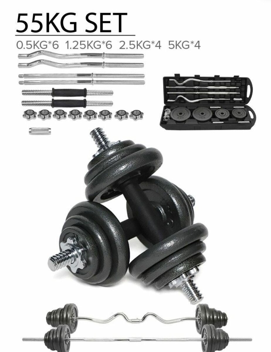 55 Kg Dumbbell Set Adjustable Chrome Plate With Straight & Curve Barbell HJ-A072 Model Number hj_a072