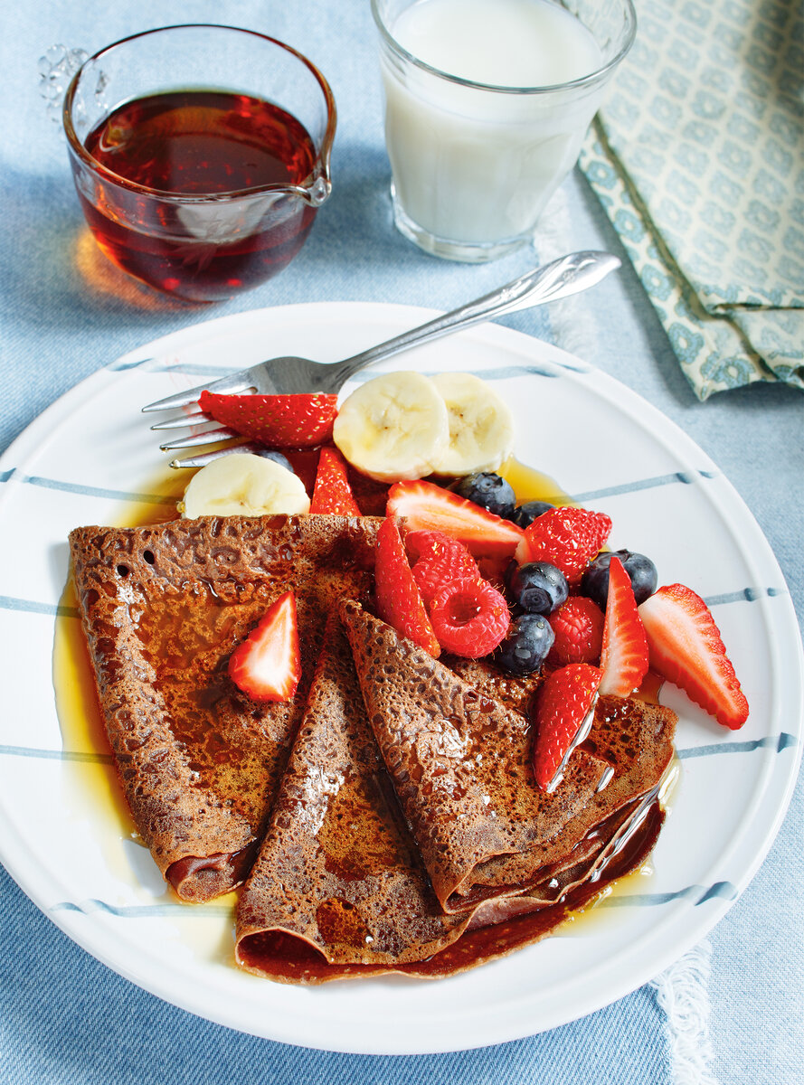 Découvrez nos délicieuses crêpes au chocolat, parfaites pour un brunch ou un petit-déjeuner gourmand. Accompagnées de fruits frais et d'un filet de sirop d'érable, ces crêpes sont une explosion de saveurs en bouche. Idéal pour les amateurs de chocolat, chaque bouchée vous transportera au cœur de la France. Faciles à préparer, elles feront le bonheur de toute la famille.