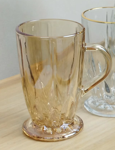 Выполнена из стекла золотисто-коричневого оттенка. Имеет утончённый дизайн с гранями, создающими изысканную текстуру. Верхний край украшен тонкой золотой каймой.В наборе 6 штук