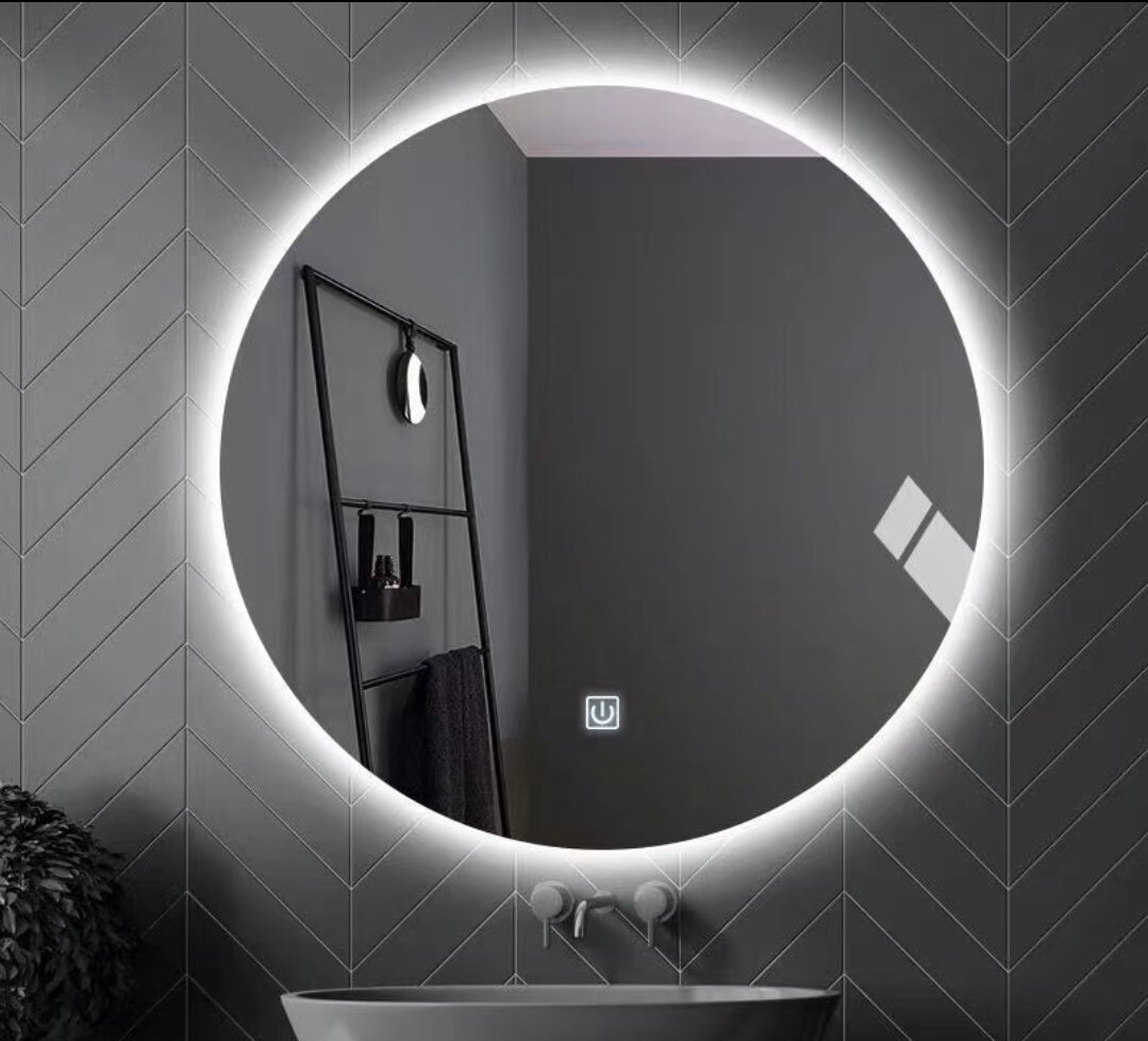 Настенное зеркало с сенсорным включателем и освещением 60см диаметр 3 вида свечения нейтральный теплый холодный