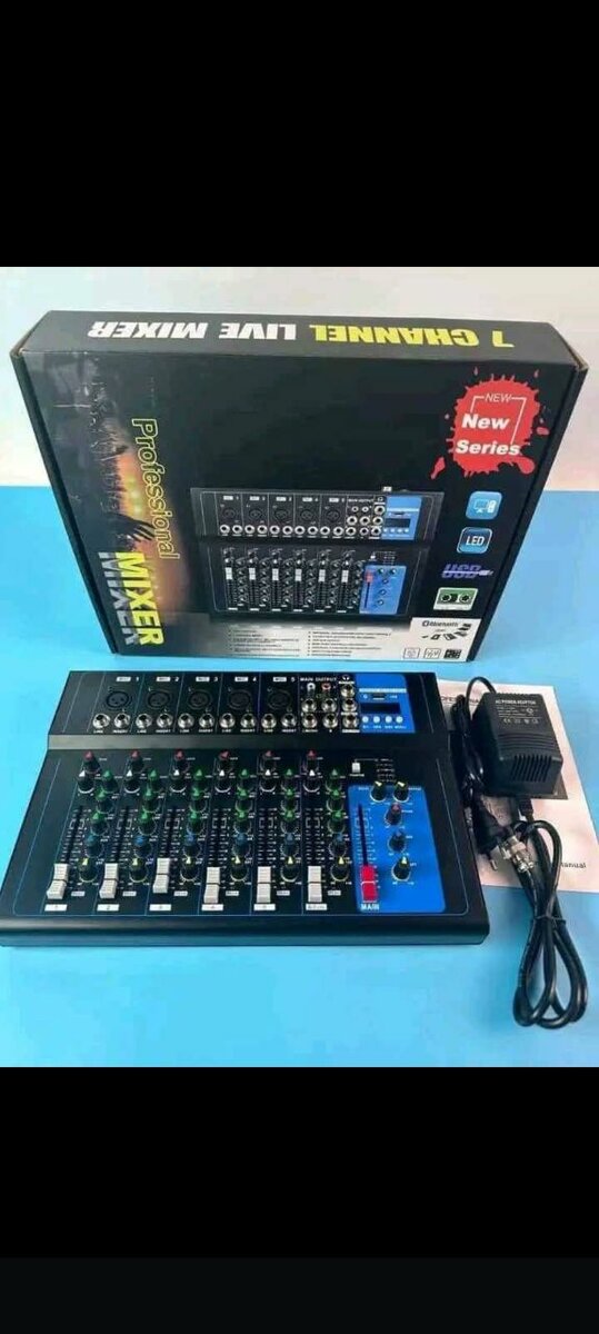Enhance your live sound with this 7-channel audio mixer. Ideal for professional and home studio use, it offers precise control over audio levels and effects. Compact and easy to use, it's perfect for musicians and sound engineers looking to achieve high-quality sound. Compatible with various audio devices.