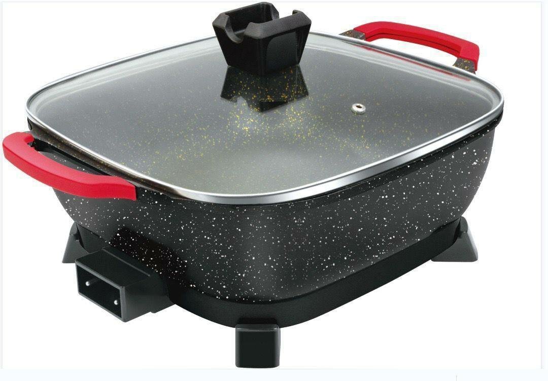 Nonstick electric cooking pan Glass lid Low electricity consumption Free wooden ladle Fast cooking and easy to clean Both outdoor and indoor use Available from 2.5lit to 12lit