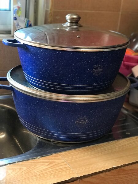 A set of blue cauldron
