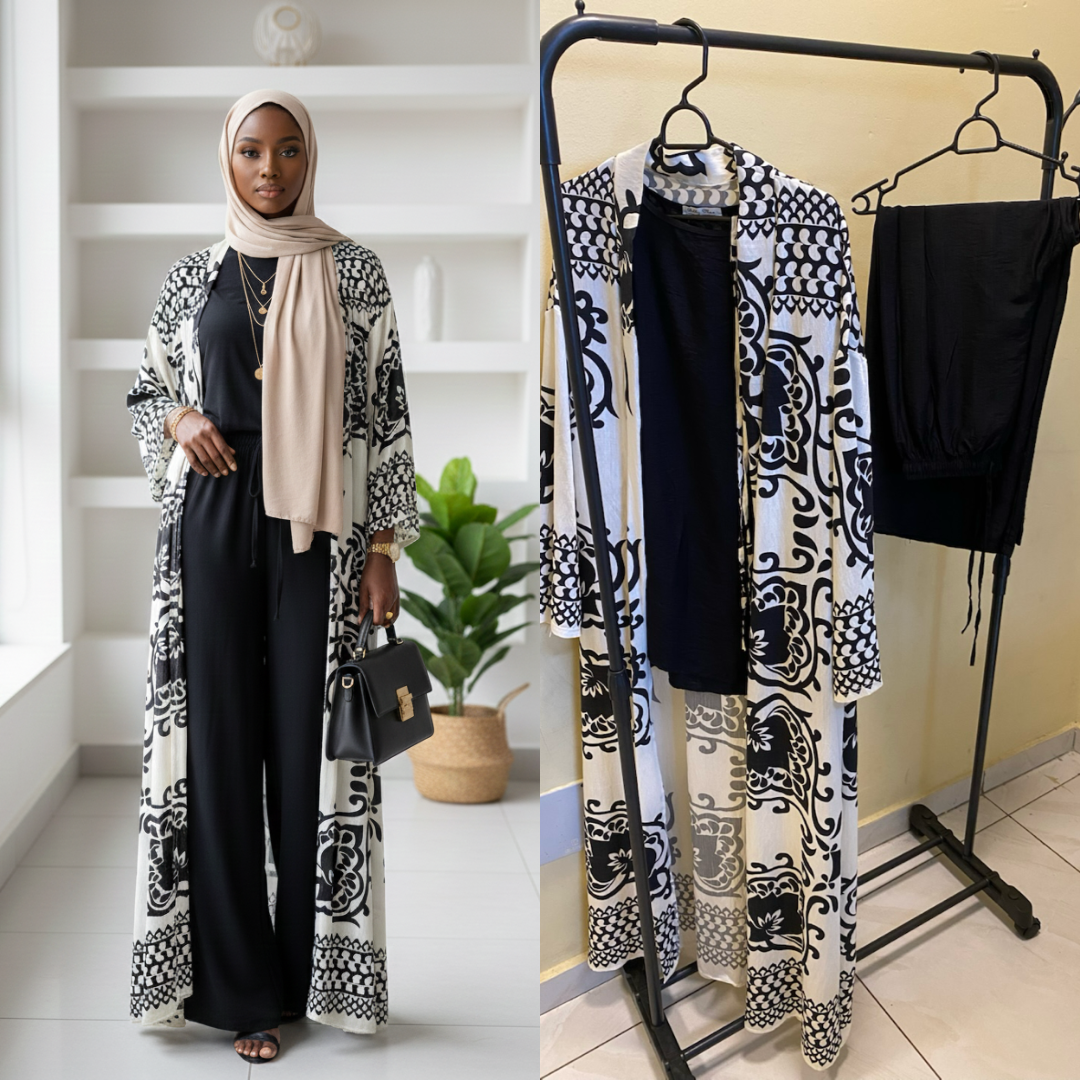 Découvrez notre kimono élégant noir et blanc, parfait pour un look sophistiqué. Conçu avec des motifs artistiques, il est idéal pour des événements spéciaux ou un usage quotidien chic. Associez-le avec des tenues simples pour rehausser instantanément votre style. Confortable, fluide et tendance, c'est un indispensable pour toute garde-robe moderne.