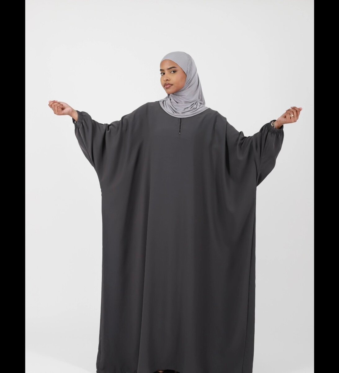 Découvrez cette abaya grise, parfaite pour un look élégant et modeste. Conçue pour offrir confort et style, elle est idéale pour toutes les occasions spéciales ou quotidiennes. Sa taille ample et fluide assure une liberté de mouvement. Un choix raffiné pour un style intemporel.