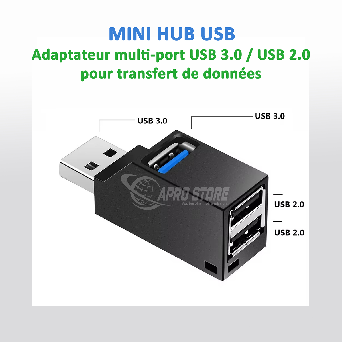 Optimisez votre transfert de données avec cet adaptateur USB multi-port. Combinant les technologies USB 3.0 et USB 2.0, ce hub compact et efficace est idéal pour les utilisateurs en déplacement. Connectez facilement plusieurs appareils pour une gestion de fichiers rapide et sans tracas.