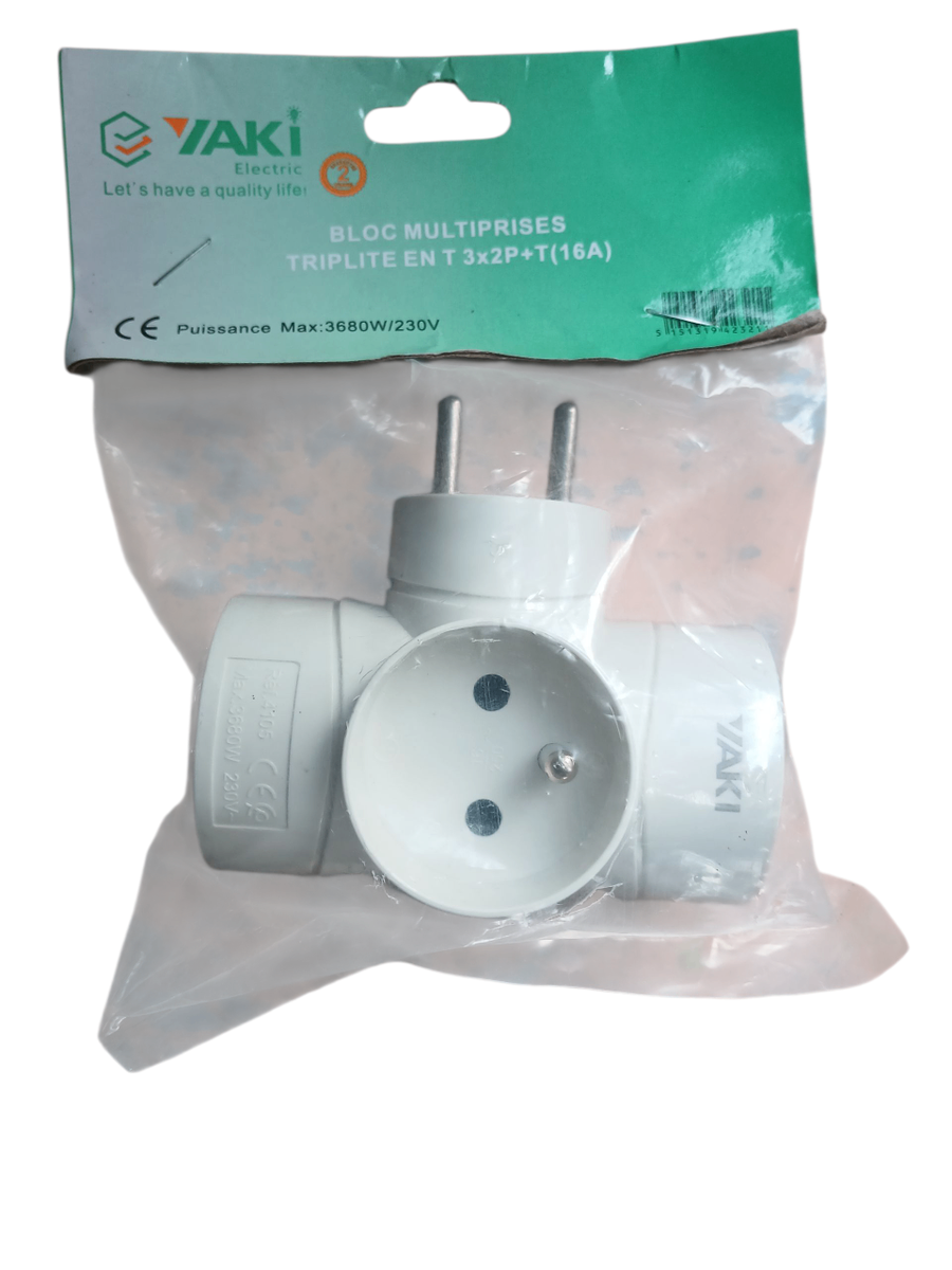 Optimisez votre espace avec l'adaptateur prise triple Yaki. Supporte jusqu'à 3680W, idéal pour la maison et le bureau. Sécurisé et efficace, il simplifie vos branchements électriques.