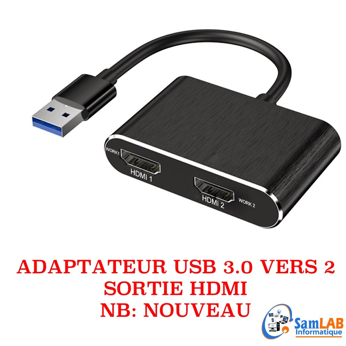 Adaptateur USB 3.0 vers 2 ports HDMI Pour afficher deux écrans