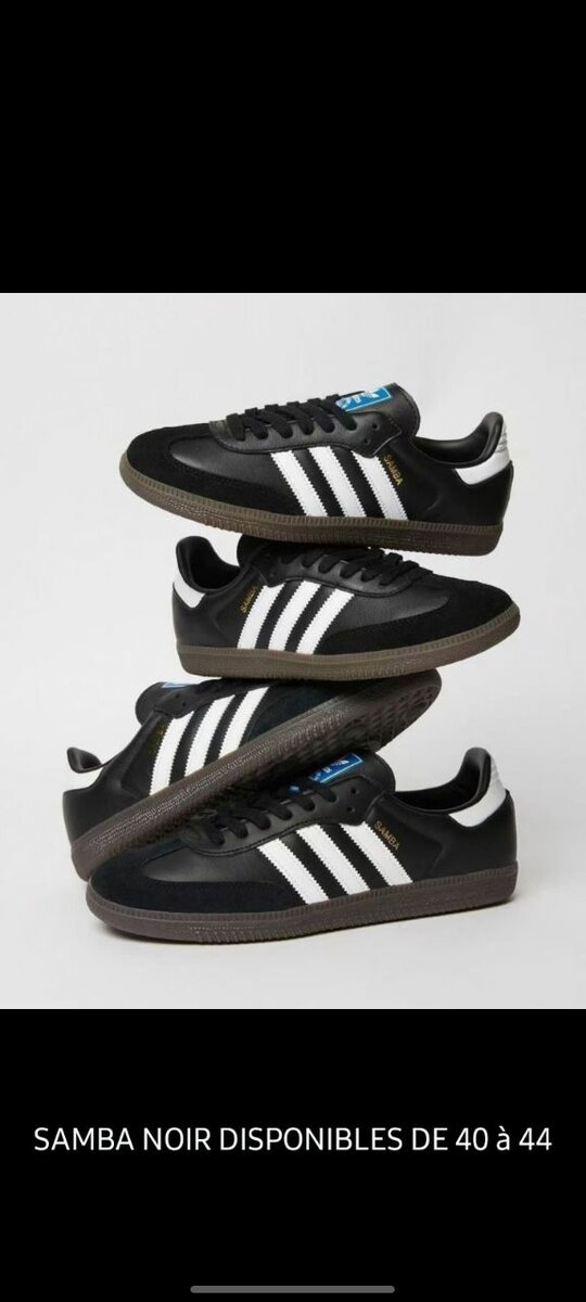 Découvrez les Adidas Samba noires, chaussures emblématiques pour homme. Conçues pour le style et le confort, elles sont parfaites pour toutes les occasions. Disponibles en tailles 40 à 44.